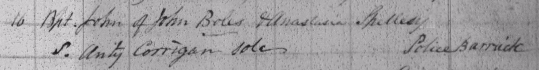 family so far but a John Boles was baptized in the Police Barracks in