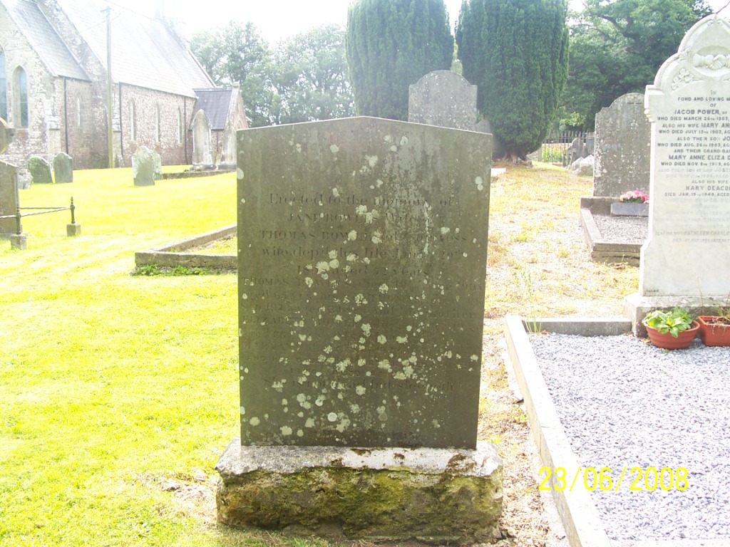 After the United Irish Rebellion of 1798, many Protestants in Wexford claimed compensation for damage to their property. Claims for Taghmon parish included: Thomas Bowels Yeoman Camross £18.13.11 James Bowls Yeoman Kemress £29.8.6 (Kemress would be Camross) This listing does not specify what was damaged but those sums are pretty high for those times. Full List of the Property Loss Claims Quite likely that represents the loss of their entire house and chattels. Following these events the family may have relocated to Wexford town for safety until they could rebuild at Camross. The only Bowles event in the church register there is the birth of a daughter, Martha, to James and Mary Bowles of Taghmon parish on Oct. 22, 1798. There was also a John Boles farming at Camross in 1798. One of the tragic events in the rebellion was the burning of the Scullabogue church filled with prisoners. In the trial which followed in 1800 one of the witnesses questioned was a John Boles who stated that he had been a private in Captain Knox's Yeoman Corps but that he had not been a Yeoman before the rebellion as he had no-one to help him at his farm and could not spare the time. A footnote to his testimony states "The Boles family lived at Camross, during part of the last century. Boles, like his neighbour John Brennan, of Castlehayestown, may have been a member of the Heathfield Cavalry." See The Massacre of Protestants at Scullabogue in County Wexford The Vestry Minutes of St. Munnu's (Church of Ireland), Taghmon list James Bowles as a church warden from 1807-09. ref. Thomas Bowles of Cameross was granted a license to keep arms (1 gun) in 1836. ref.The Griffith Valuation of 1853 shows William Bowles just north of Camross town with a house, office and 34 acres of land with two tenants. About 1/2 mile to the NW in Ballyvergin townland there is a James Bowles with a house but no land so he was probably involved in a trade or may have been retired. William's house was valued at £1 5s so it would have been a better quality slate-roofed two room stone house. James was valued at only 5s so it would probably have been the basic thatched roof, dirt floor, one room stone house. The 1901 Census of Camross, co. Wexford lists only one Bowles family: Thomas Bowles (59), farmer, wife Elizabeth and 7 children ranging in age from 2 to 25. They had a 4 room house with 7 out buildings: a stable, a cow house, a calf house, a piggery, a fowl house, a barn and a shed. Along with the Jacob Power family, they were the only two Protestant families in the 33 occupied houses in Camross townland, 17 of the 141 residents of the townland. Thomas died in 1905 and is buried in the Horetown cemetery (see below). In the 1911Census of Camross the only Protestant family in the townland was a shopkeeper, Joseph Deacon, who was Jacob Power's son-in-law. The Bowles family had moved on. Thomas' daughter Martha (16) is a servant for the Litt family at Clonleigh. His son Thomas (21) is living at Raheenduff near Horetown where he is a groom for Colonel Maxwell Stronge, retired. His son John (19) is a servant for the Robert Deacon family in Rathpatrick, Kilkenny. Thomas, his wife, his mother Jane and three of his children, John, Mary Anne and Martha are buried in the Horetown cemetery.HoretownThere may be more Bowles references in the St. James Horetown registers as there is a memorial for Thomas Bowles of Camross' family in the cemetery there. Erected to the memory of Jane Bowles wife of Thomas Bowles of Camross, who departed this life Jan. 20th 1858 aged 72 years. Thomas Bowles died 18th June 1905 aged 65 years. His son Thomas died 19th Sept 1923 aged 34 and his mother Elizabeth Bowles died 21st Oct 1939 aged 85 years. Also her daughter Maryanne died 6th Sept 1942 aged 44 years, and her daughter Martha died 28th March 1944 aged 48 years. She is not dead but sleepeth. Some photos of The Horetown Church (St. James Horetown) (C of I)New RossIt seems most likely that one or more Bowles lines from Camross moved to New Ross in the mid-1800's. The earliest Bowles birth in the civil index was in 1864 but there are 6 Bowles in the death registry index for New Ross between 1864 and 1867 and they continue on there until at least 1954. The 1901 Census only has one Bowles residence: a widow Jane Bowles with children Robert Charles (19), Selena E. (17) and Isabella (13) living on Cross Lane. She is still there in the 1911 Census but with only Isabella living with her. Her birthplace is given as co. Cavan in both but the children were all born in Wexford. The 1911 Census also states that she had been married for 42 years and that 7 of her 10 children were yet living. A William Bowles of Cross Lane had died in 1896 so he was almost certainly her husband (St. Mary's New Ross Register). In both censuses there is a Sidney E. Bowles, who also gave her birthplace as co. Cavan, working as a Lady's Maid in a Great House. This would probably be another of William and Jane's children. Possibly William spent some time in co. Cavan, married there and started a family before returning to Wexford.Robert Bowles of New Ross 18662 Private 14th Battalion The Hampshire Regiment died of wounds in France March 27, 1918 ref. I have not sorted out most of the Bowles in New Ross references yet but there are quite a few of them listed in Bowles BMD References in Wexford. I hope to be able to add quite a bit to this section in the near future. One very strange one, a Henry Bowles of Greenwich, Kent, England married in New Ross in 1844. ref. Perhaps a local who moved to England and came back to be married??? |