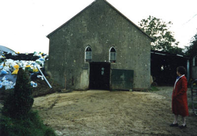 As you approach the Bawnlea townsite today pretty much all there is now, other than fields and the remains of old stone walls, is the Methodist Chapel/cow barn on the left and the Cooke home on the right.