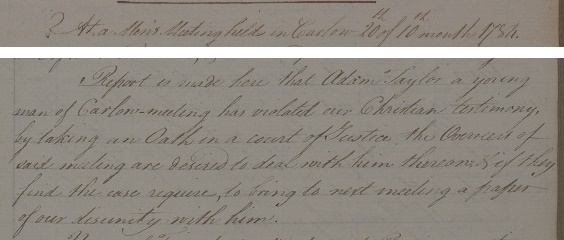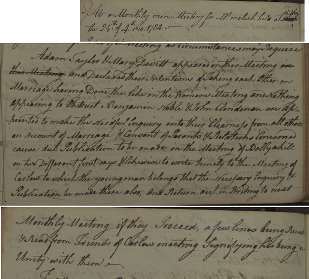 In October 1784 the minutes of the Carlow Mens Meeting note that 'report