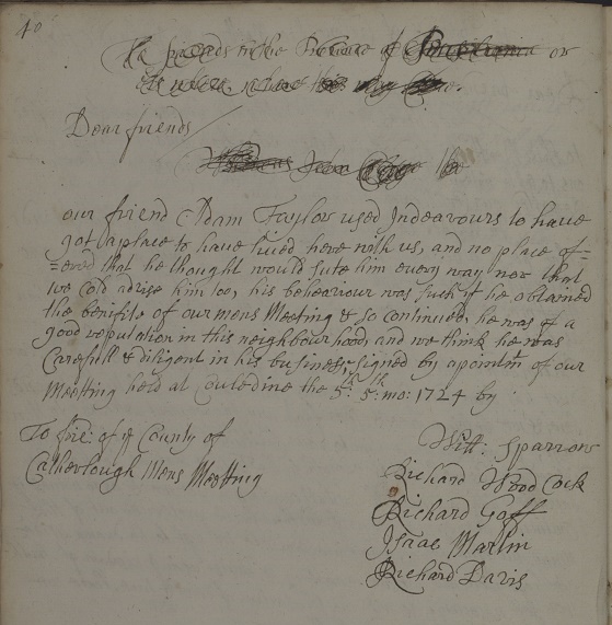 being come in behalf of Adam Taylor by order of Coladine monthly meeting