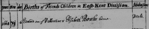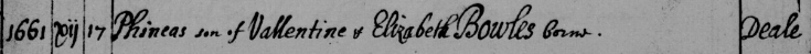 3. Balthazar Bowles bp. June 21, 1674 St Leonards Deal