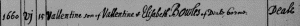 1. Elizabeth Bowlls bp. Apr. 6, 1669 and bur. Aug. 5, 1669