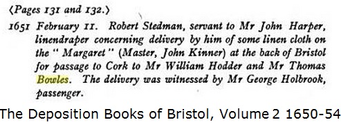 See Thomas Bowles Jr. and Family of Dublin for the continuation of this line and The Thomas Bowles of Dublin Family Tree